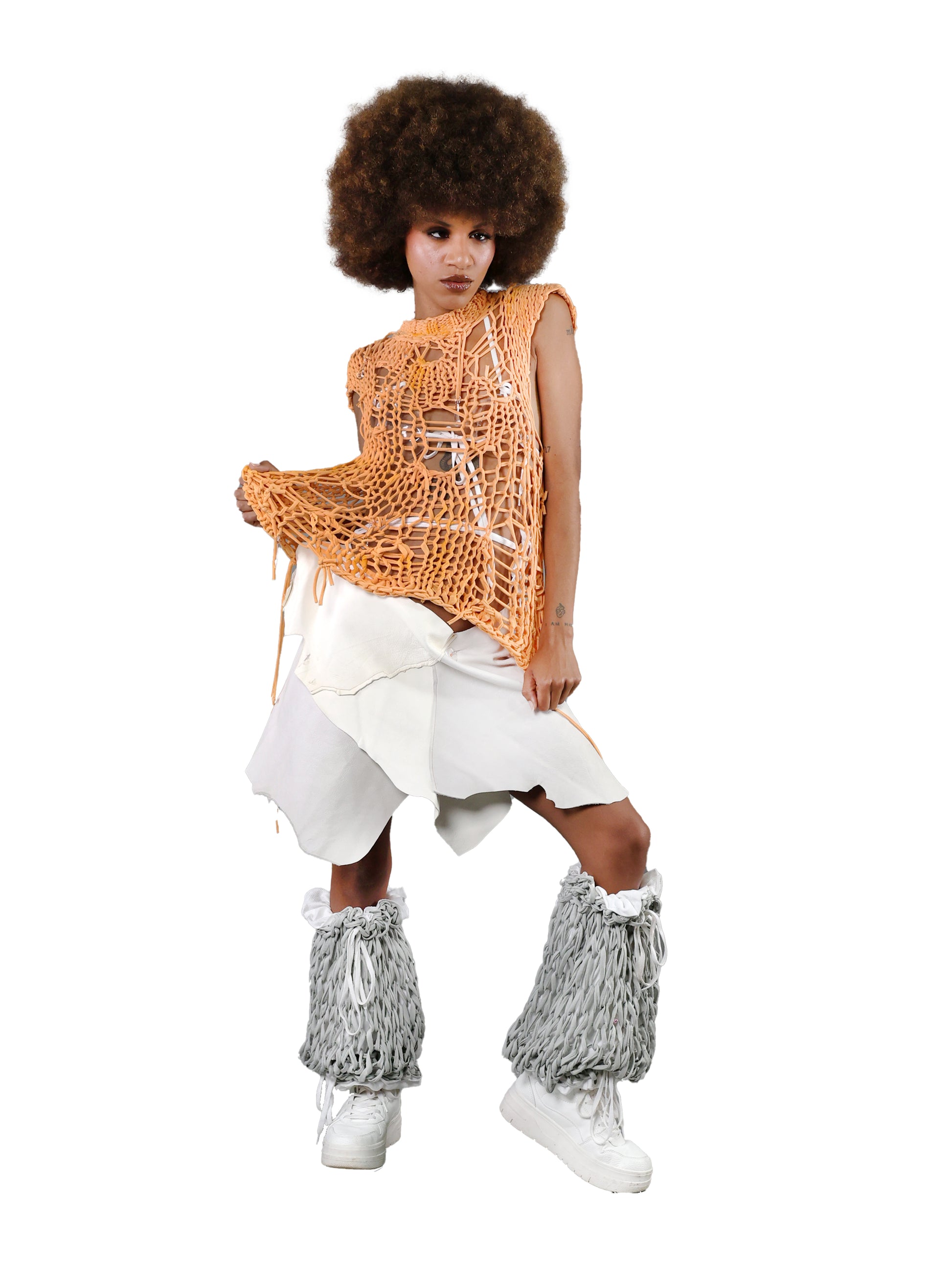 Get ready to stand out with our hand-knitted orange top! With unique glass drops applications, this layerable piece is sure to turn heads. Show off your playful side in this quirky and fun addition to your wardrobe.