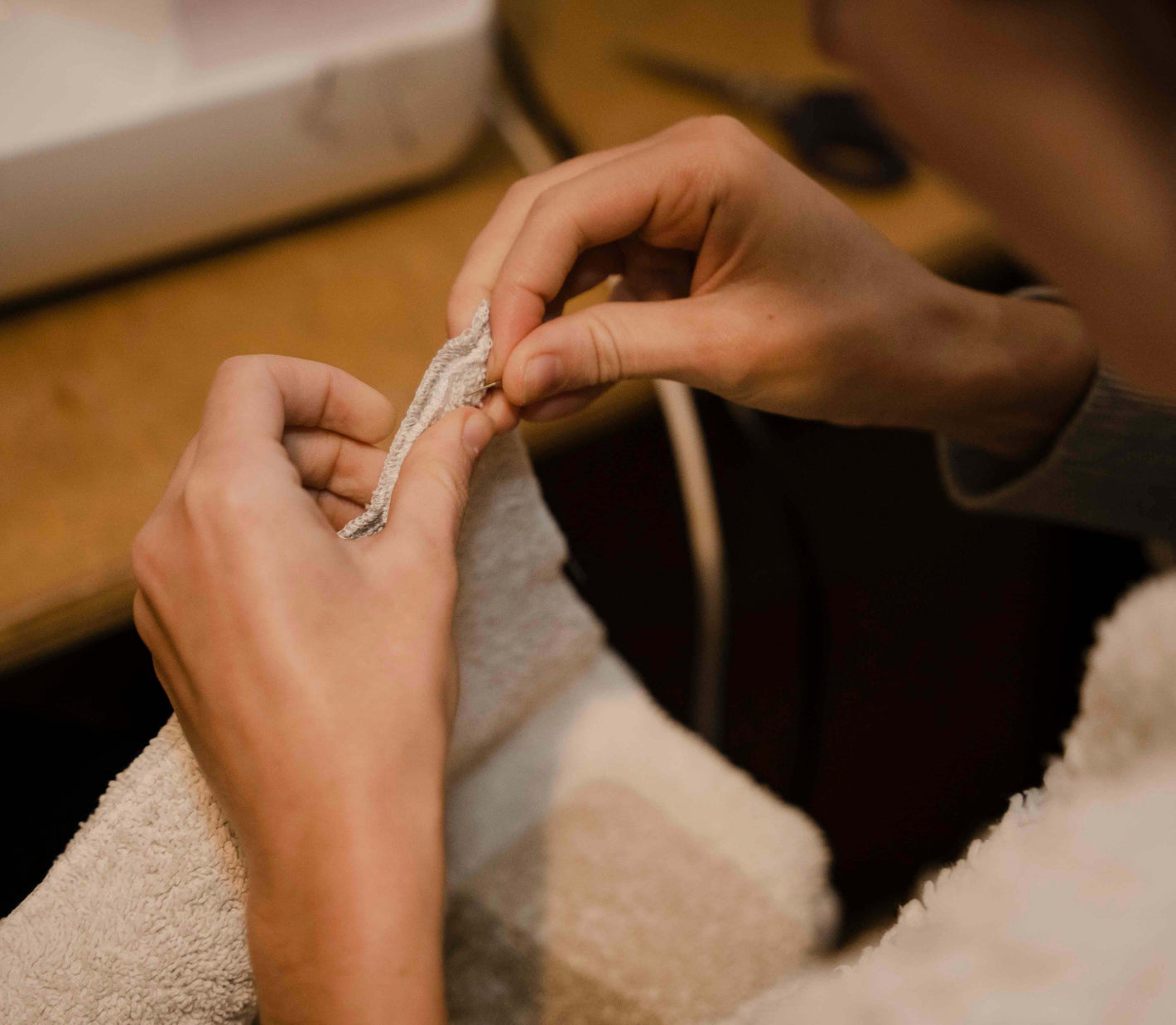 Evitamos que los residuos textiles sean destruidos, donde los materiales de desecho se convierten en nuestras nuevas materias primas. Somos unisex y de talla única y producimos de forma limitada según la demanda prevista. La ropa unisex y de talla única reduce los plazos de producción y evita el consumo excesivo.