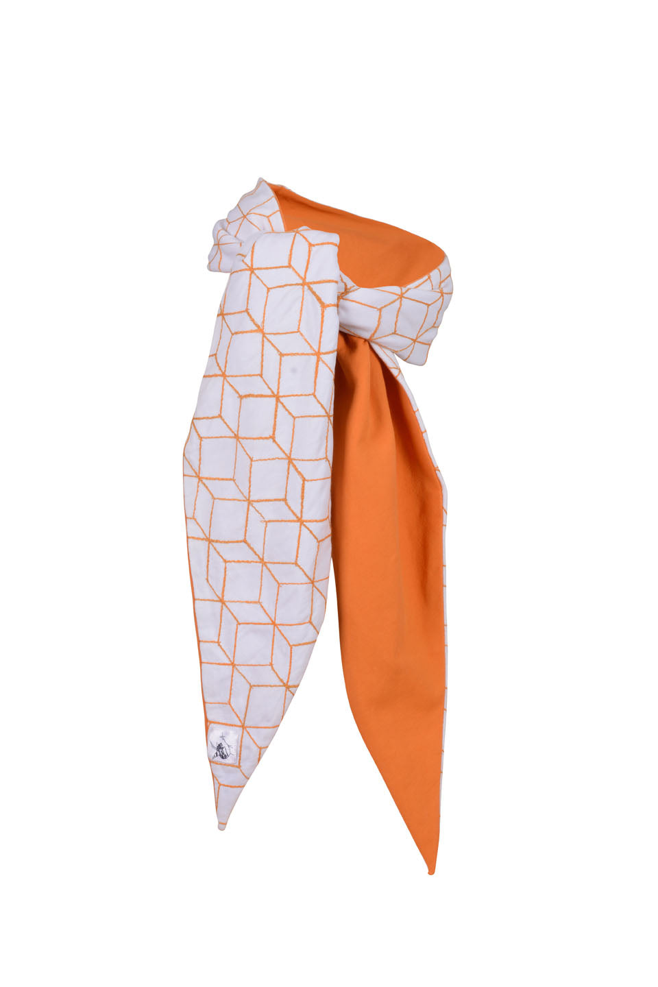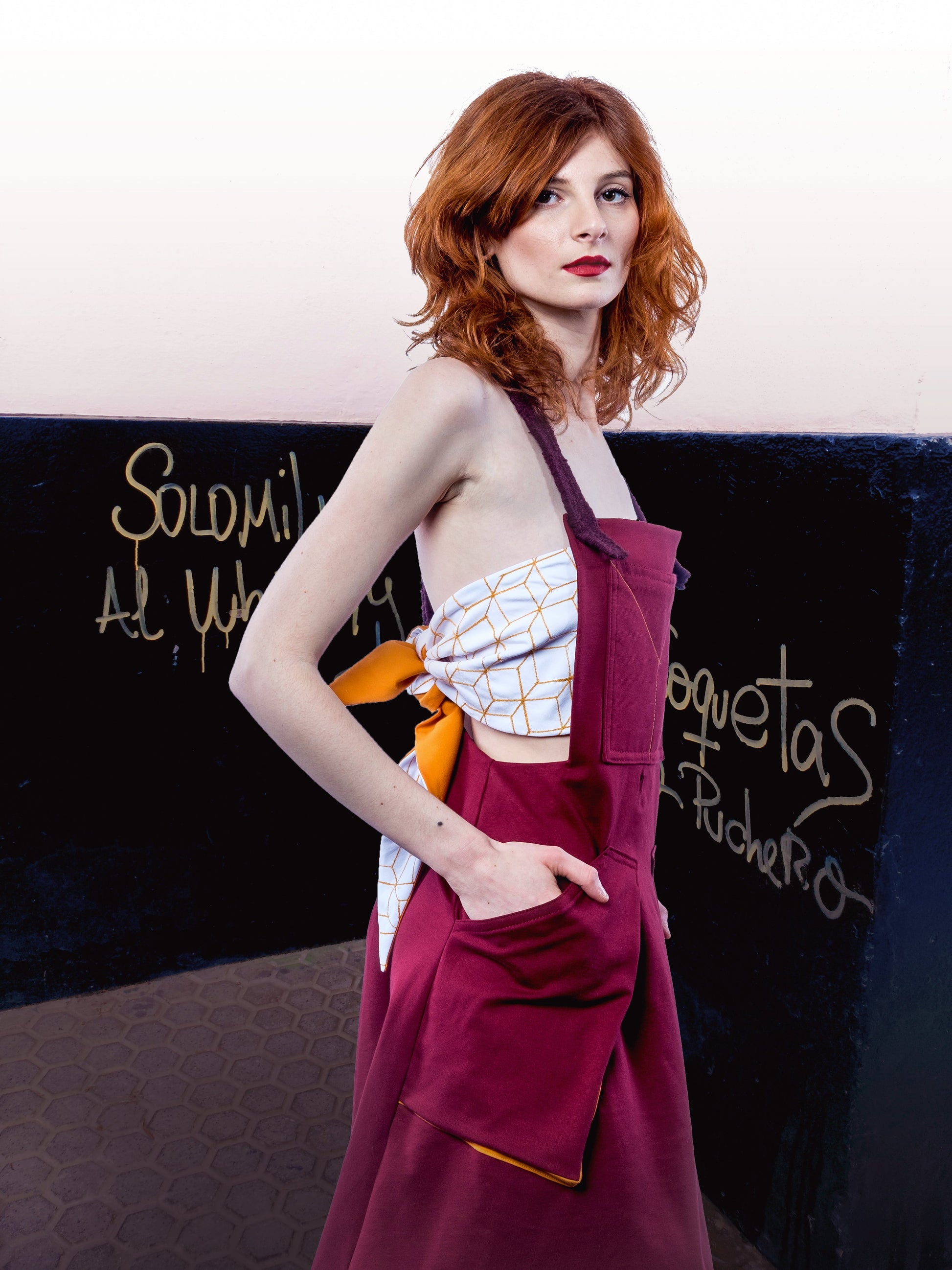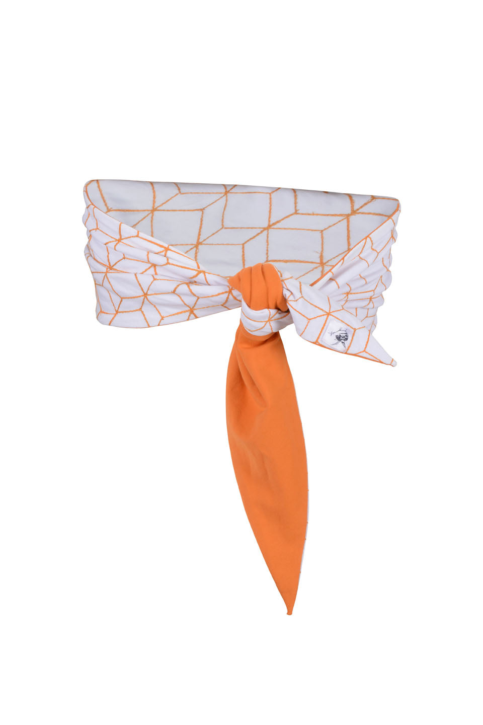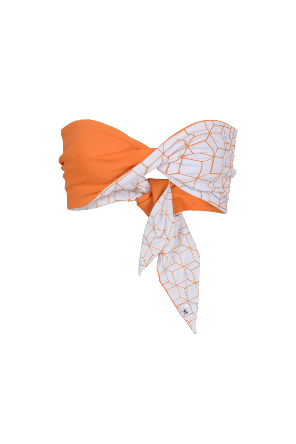 El Bandeau Top de la colección Trashroots es una prenda multifuncional que puedes usar en el torso o en la cabeza, evitando que el cabello se mueva. Tiene un delicado bordado artesanal cubriendo el lado blanco de la prenda. Se puede llevar por ambos lados, añadiendo siempre destellos de vibrantes colores andaluces.
