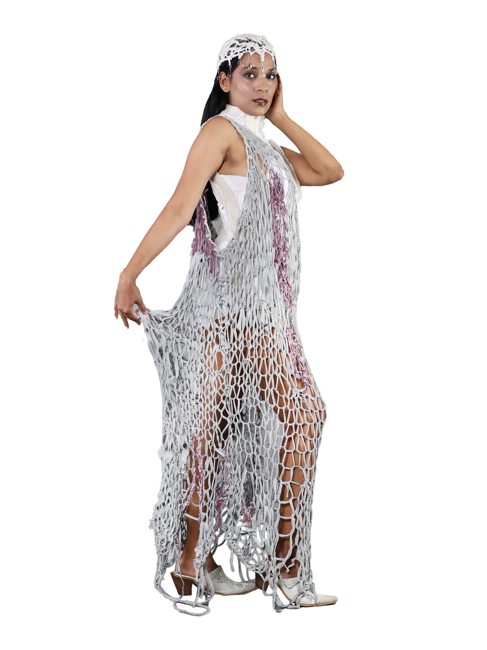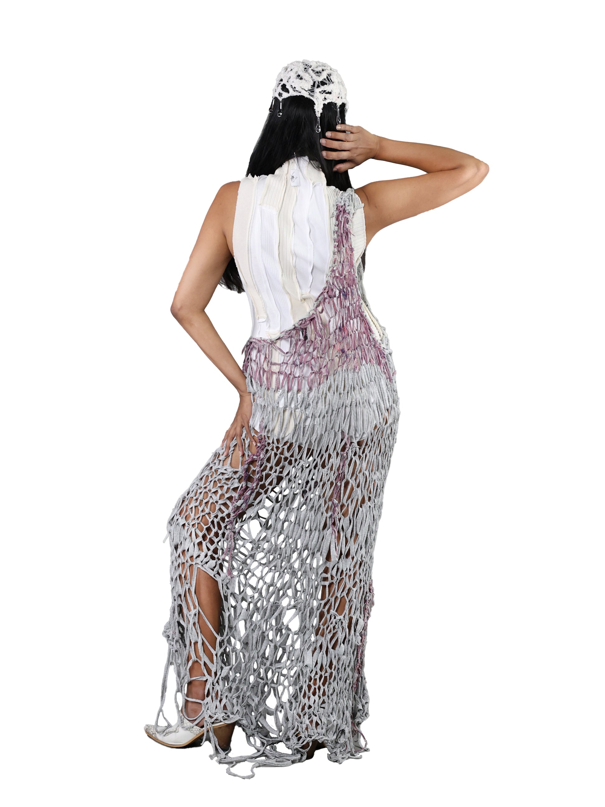 Stay comfortable and stylish with our Hand-Knitted Dress, made with care and attention to detail. The soft grey tones are accented with playful hints of violet, making it easy to mix and match with your favorite casual outfits. With adjustable sides, you can tweak the length to suit your look. This one-of-a-kind dress is perfect for showing off your unique style while keeping things cozy and simple.