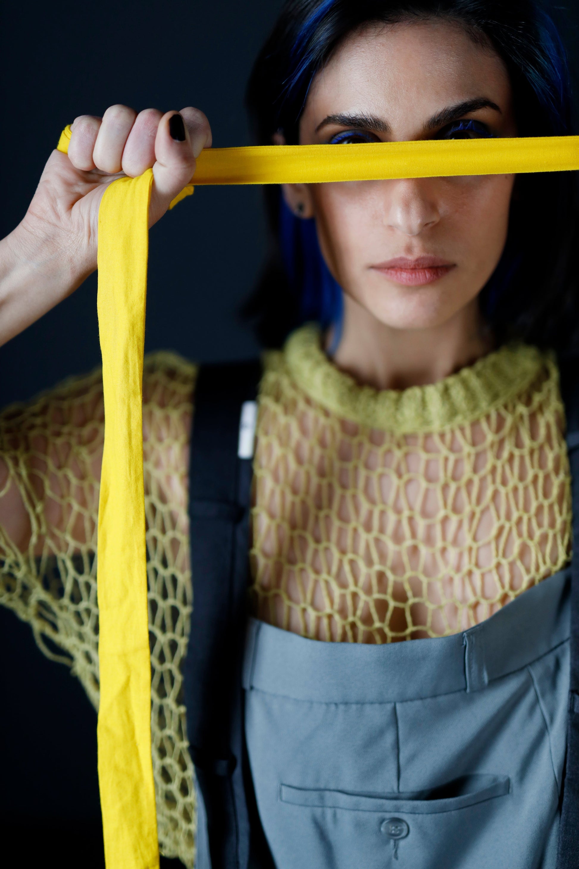 La Línea de Expresión de la colección LESS es una pieza conceptual y artística que se puede usar como corbata o lazo y doblarla tantas veces como sea necesario. Está hecho íntegramente de materiales sobrantes de nuestros residuos de consumo textil y, principalmente, de algodón. Cada pieza es única, pero parece casi idéntica.
