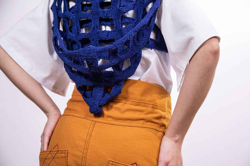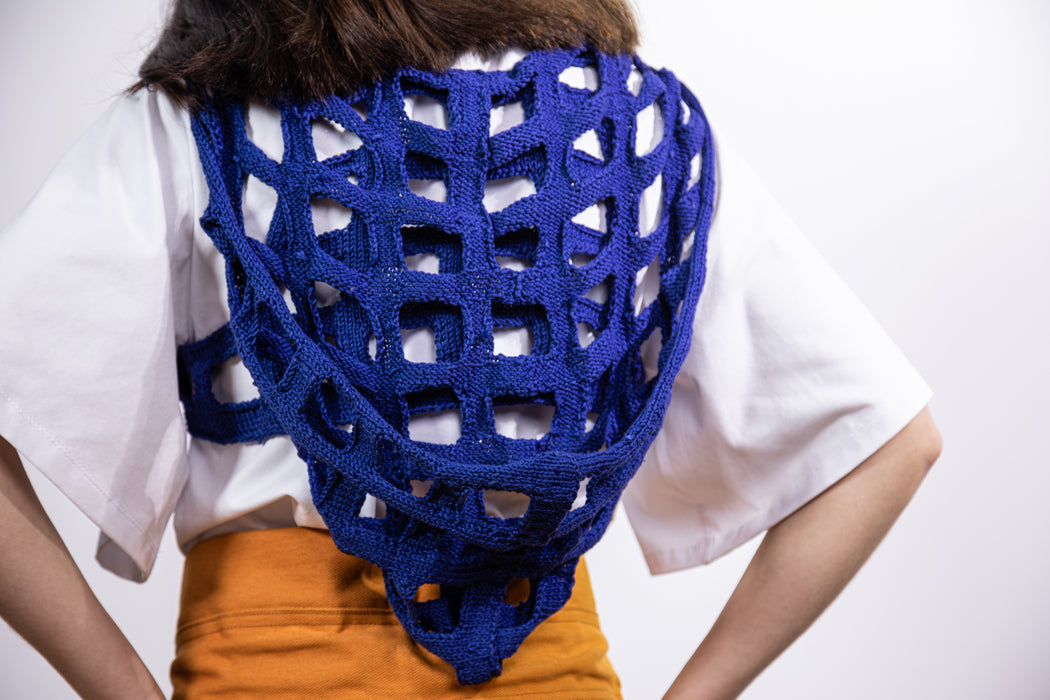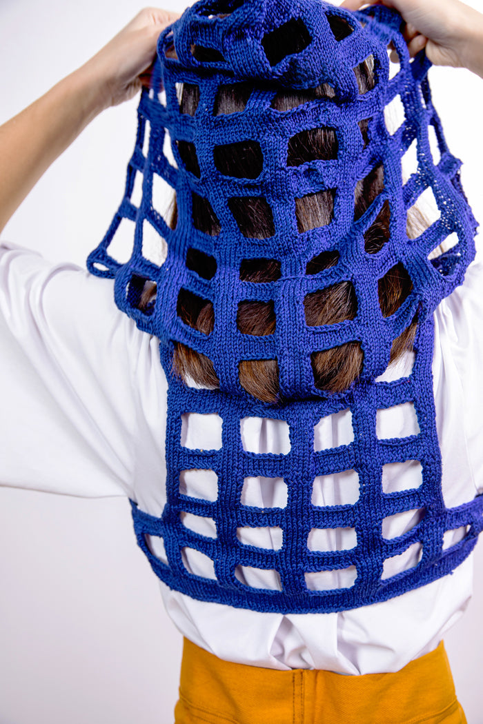 Elegante top corto de algodón tejido a mano con sudadera con capucha producido en Turtlehorn Studio por artesanos locales. Acogedor y cómodo de llevar, informal, para hacer deporte, en fiestas y en todas partes. Una pieza fresca con plazas que recuerdan a las aceras y la arquitectura andaluza. Unisex y talla única (M/L) en color azulejo 'Azulejo' oscuro.