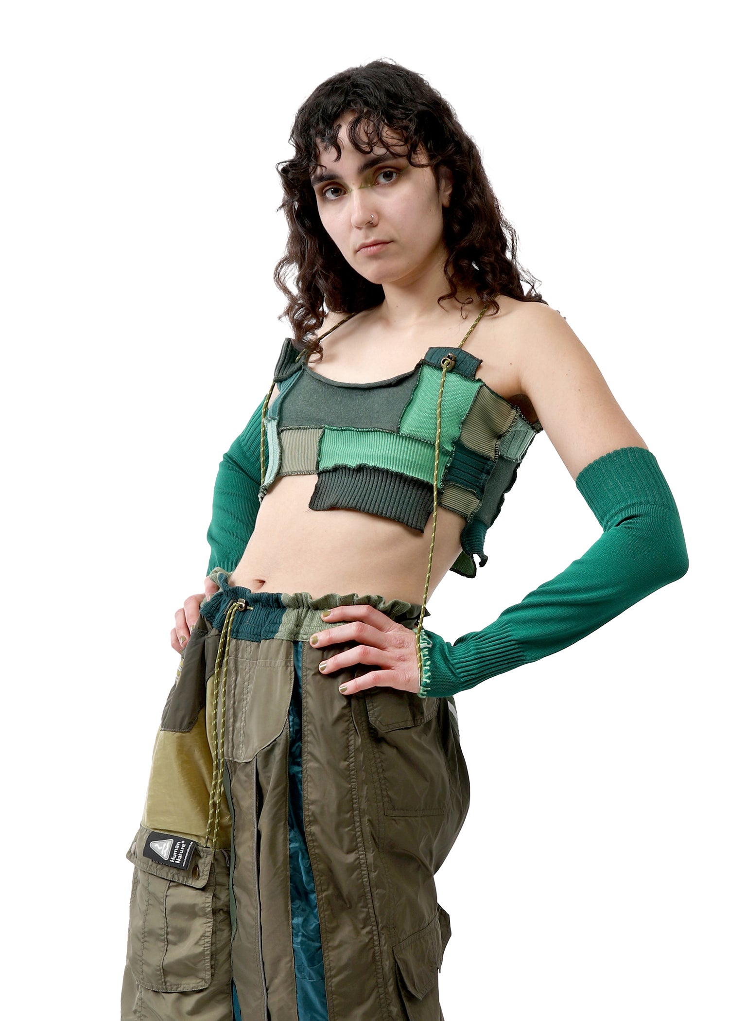 Este Crop Top con parches combina un estilo urbano moderno y comodidad unisex. Con un diseño de patchwork de prendas de punto usadas, estos tops cortos están disponibles en 3 colores: verde, azul y marrón. El crop top de talla única es perfecto para cualquiera que busque llamar la atención. ¡Muestra tu nítido estilo gorpcore hoy!