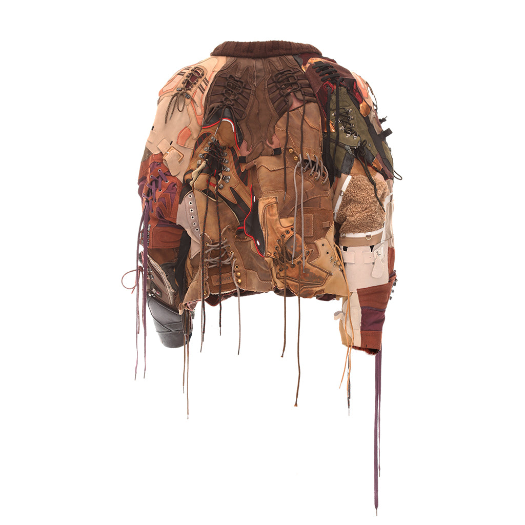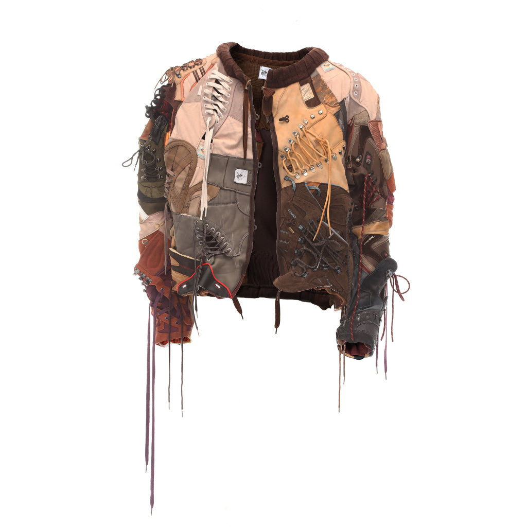 Nuestra famosa "Shoe Jacket" es una pieza muy especial de la colección Survivors of the Future (SOTF), que se puede usar en cualquier ocasión, sobre todo recomendable para eventos especiales. Esta elegante chaqueta bomber cuidadosamente confeccionada en España, confeccionada con zapatos de montaña, tiene un corte unisex, de tamaño amplio y adaptable con cordones en la parte inferior. Tiene un estilo urbano gorpcore único, que se puede usar en cualquier temporada.