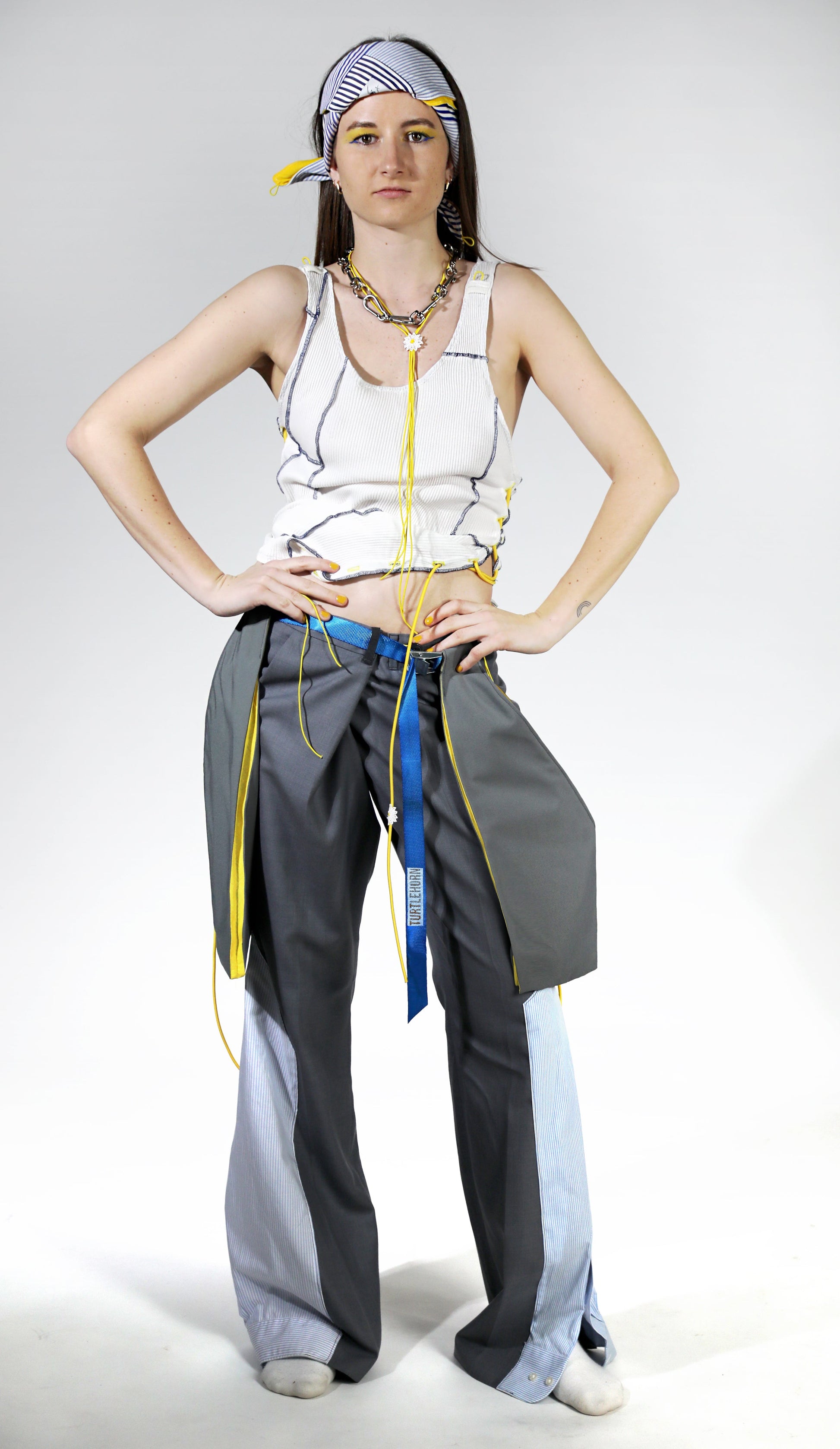 El pantalón Sluggy Cargo de la colección LESS es una prenda moderna y elegante, que puedes usar con o sin bolsillos más su cinturón. Adaptable con botones amarillos y un cinturón rasgado. Está fabricado íntegramente con materiales sobrantes de nuestros residuos de consumo textil. Principalmente de algodón y un pequeño porcentaje de materiales sintéticos. Cada pieza es única, pero parece casi idéntica.