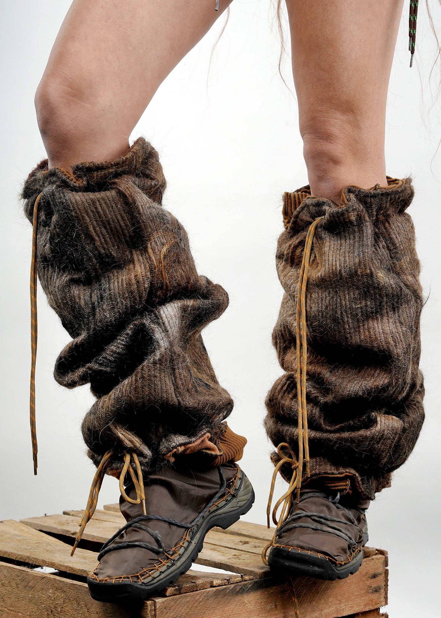 Stay warm in style with our Hairy Leg Warmers! Crafted with human hair material, collected from diverse local hairdressers. These leg warmers provide unmatched insulation and coziness with a special, fashionable flair. Inside it is crafted out of sorted out brown knitwear ensuring great coziness. Take your outfit to the next level with this statement piece!