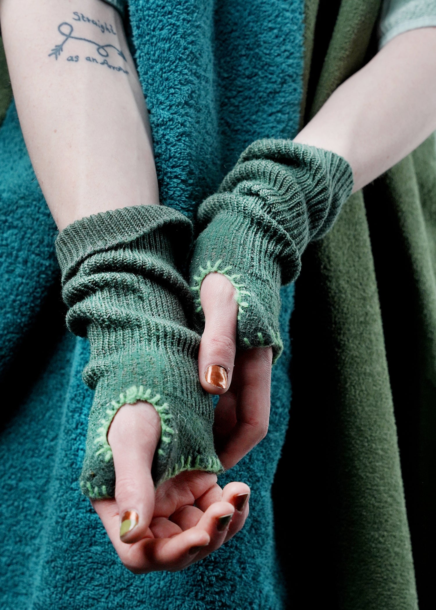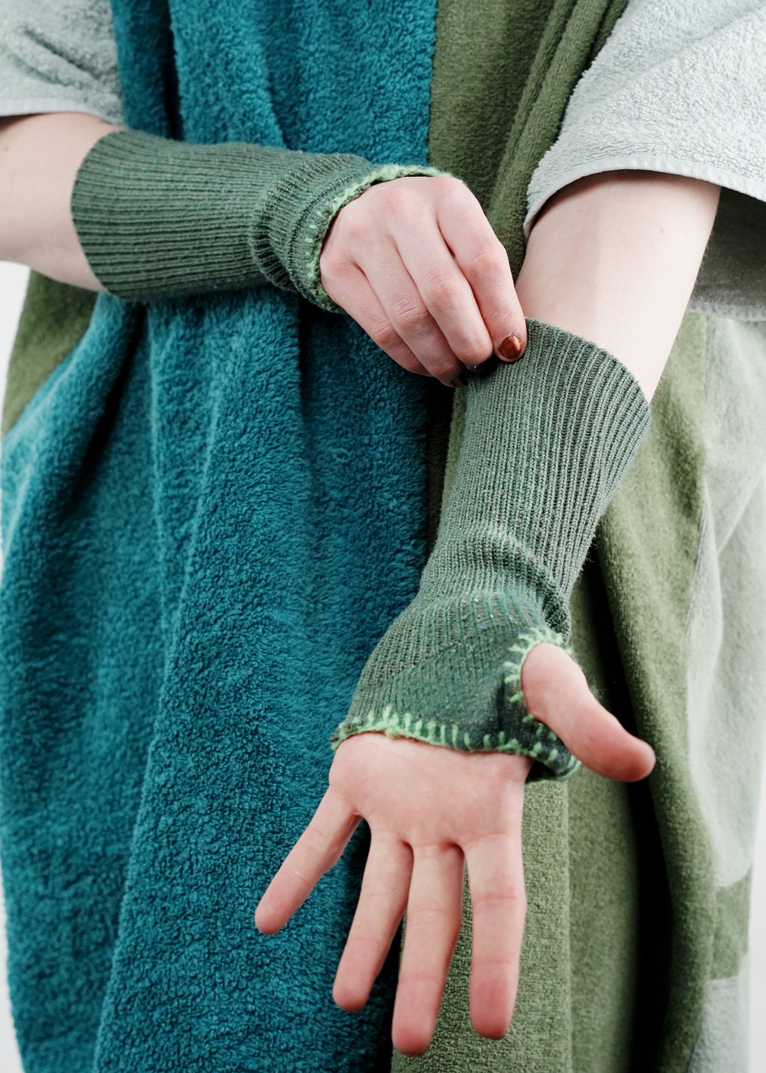 The Hand Warmers from the collection Survivors of the Future (SOTF) keep your hands warm in any situation. Available in green tones only. Send request, to get them in blue, white or brown. Quality crafted from selected knitwear out of cotton or synthetic materials.