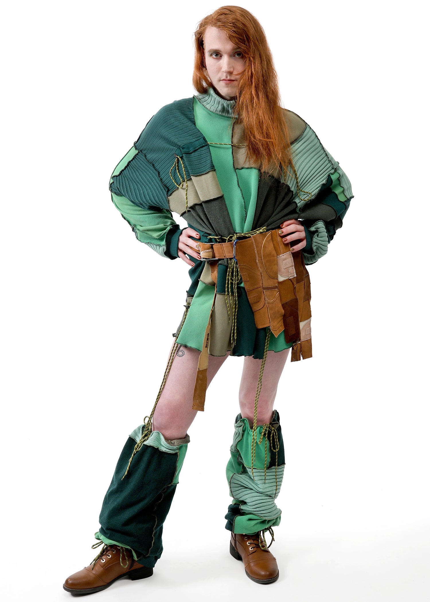 This Shoe Leather Overskirt from the collection Survivors of the Future (SOTF) is made from selected, sorted out mountain shoes, carefully manufactured into a pleated skirt look. Making it an ideal choice for combining it with a long shirt, dress or skirt of your choice.
